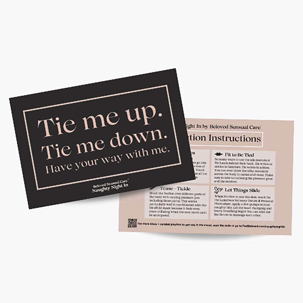 - How-To Seduction Instructions Card + Access to Naughty Night In Website (full instructions on how to use everything in the set)