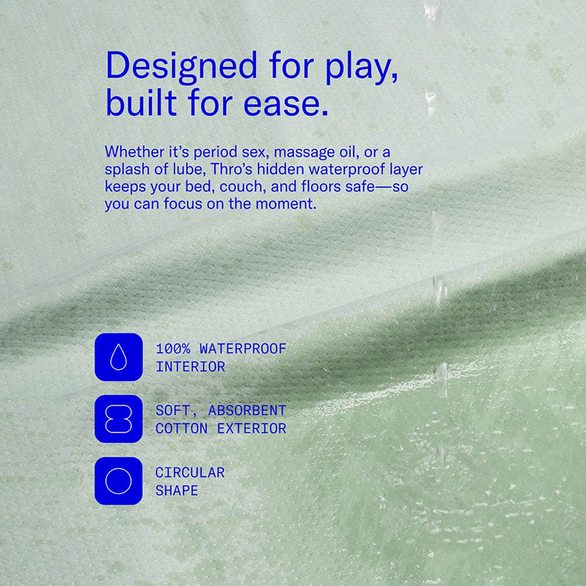 Made from ultra-soft cotton, Thro is a circular sex blanket with a hidden waterproof layer that keeps things mess-free, and a pouch that keeps it travel-ready. Breathable and compact, it's designed for whatever you're intofrom period sex to breakfast in bed, to picnic under the stars.