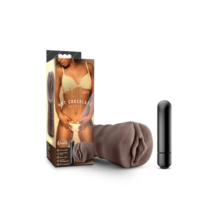 The Hot Chocolate Alexis is aching to take you whenever you want her. This soft, vagina-shaped masturbator is made of lifelike X5 Plus, for the perfect balance of soft and firm. Plus, the one-speed vibrating bullet delivers even more sensation up and down your shaft. Sized for convenient one-hand stroking, Alexis is open-ended to fit all lengths and is equipped with a no-slip grip, so you control the speed and depth of your thrusts. Enjoy Alexis alone or with your partner! Made of premium X5 Plus TPE, this stroker is high-quality and body safe. Bullet vibe requires 1 AAA battery (not included).5.25 Inch Length x 1.5 WidthX5 Plus Superior TPE for Soft and Realistic FeelLab Tested & Verified To Contain No Unsafe Compounds. Silicone, Water Based, Hybrid Lube SafeIncludes Single Speed Vibrating Bullet. Requires 1 AAA Battery (Not Included)