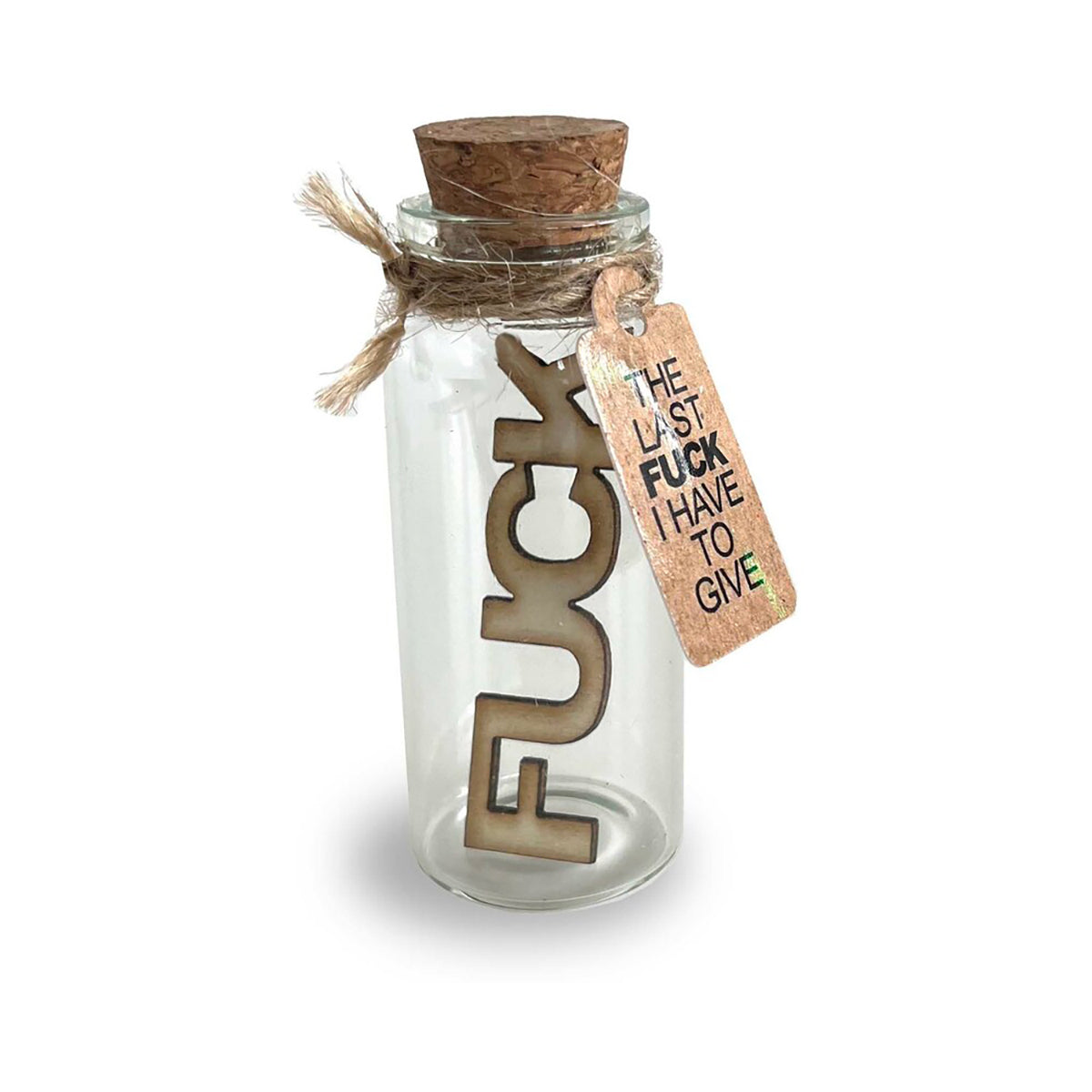 Introducing the Last Fuck I Have to Give, a cheeky novelty that will leave a lasting impression. Each POP display includes 12 elegantly crafted jars features a single wooden fuck inside each one, serving as a humorous reminder of life's little frustrations. Whether it's a gift for yourself or someone who needs a laugh, this eye-catching display is sure to spark conversation and bring a touch of irreverent humor to any space.