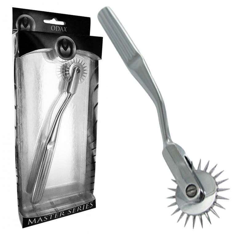 Run this premium spiked wheel across the skin and other areas for an exciting prickle of pleasure. Made of stainless steel and designed with a row of evenly spaced sharp pins that turn smoothly as it rolls across the flesh, the Odax is ideally designed for intense, exquisite pleasure. Take it to the next level with a little temperature play. The slick material of the Odax can be warmed or cooled for an extra spike of sensation. Measures 7 in. long. Wheel measures 1.2 in. diameter.