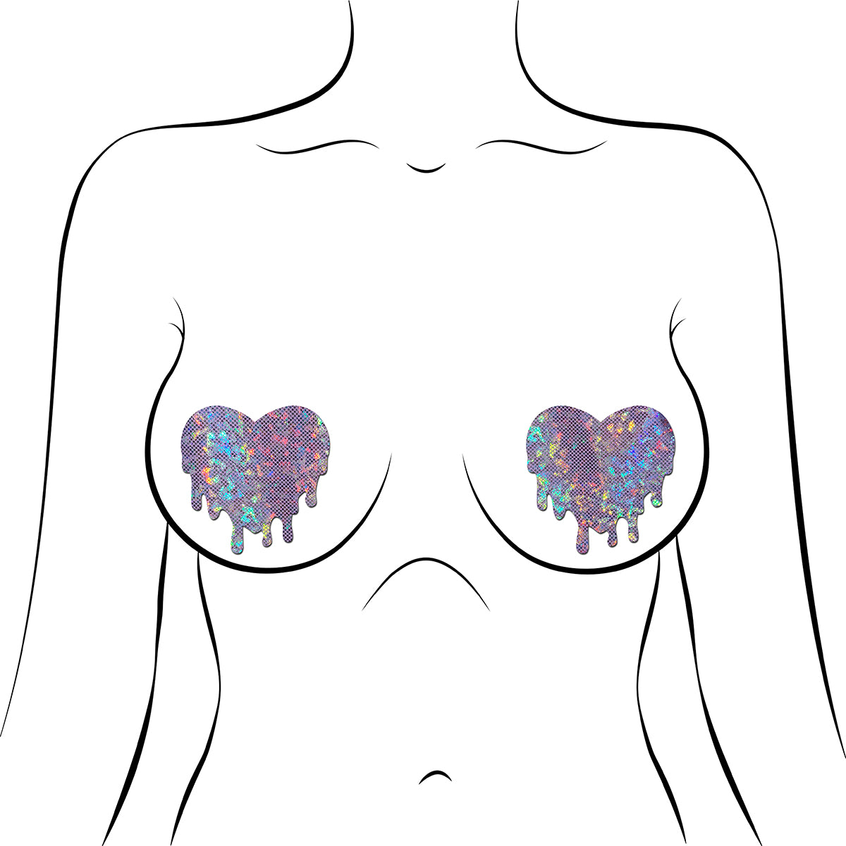 Melty Heart Nipple Pasties by Pastease are hand-made in the USA of soft form-fitting glittery material that forms seamlessly to curves and resists wrinkling over hardening nipples.