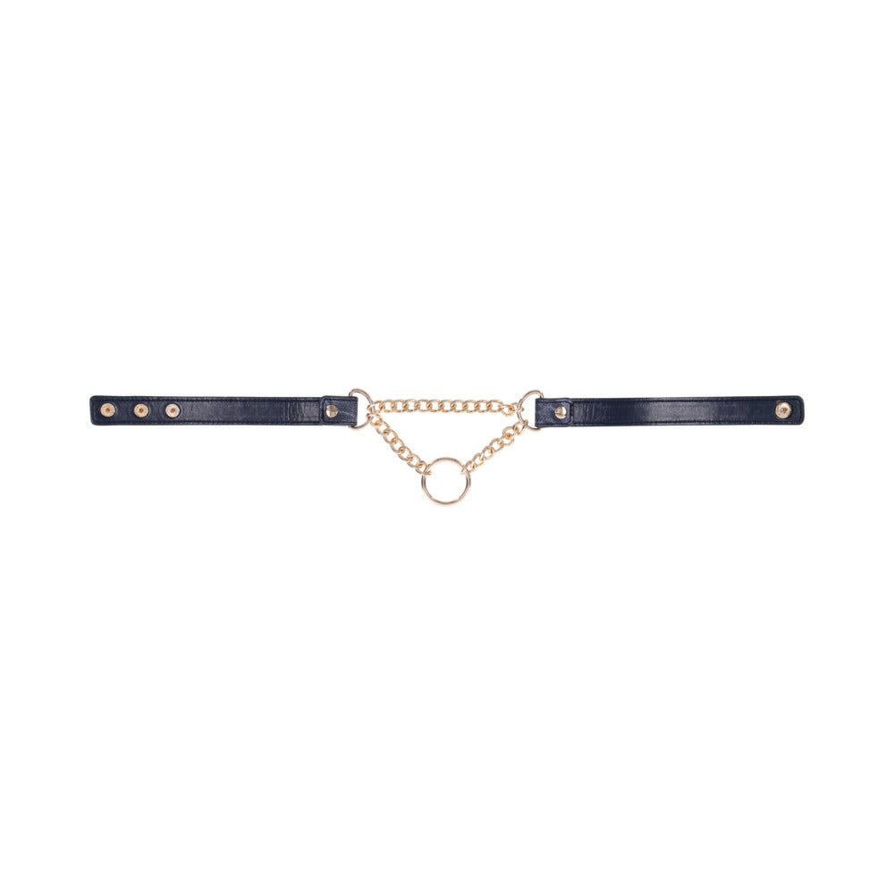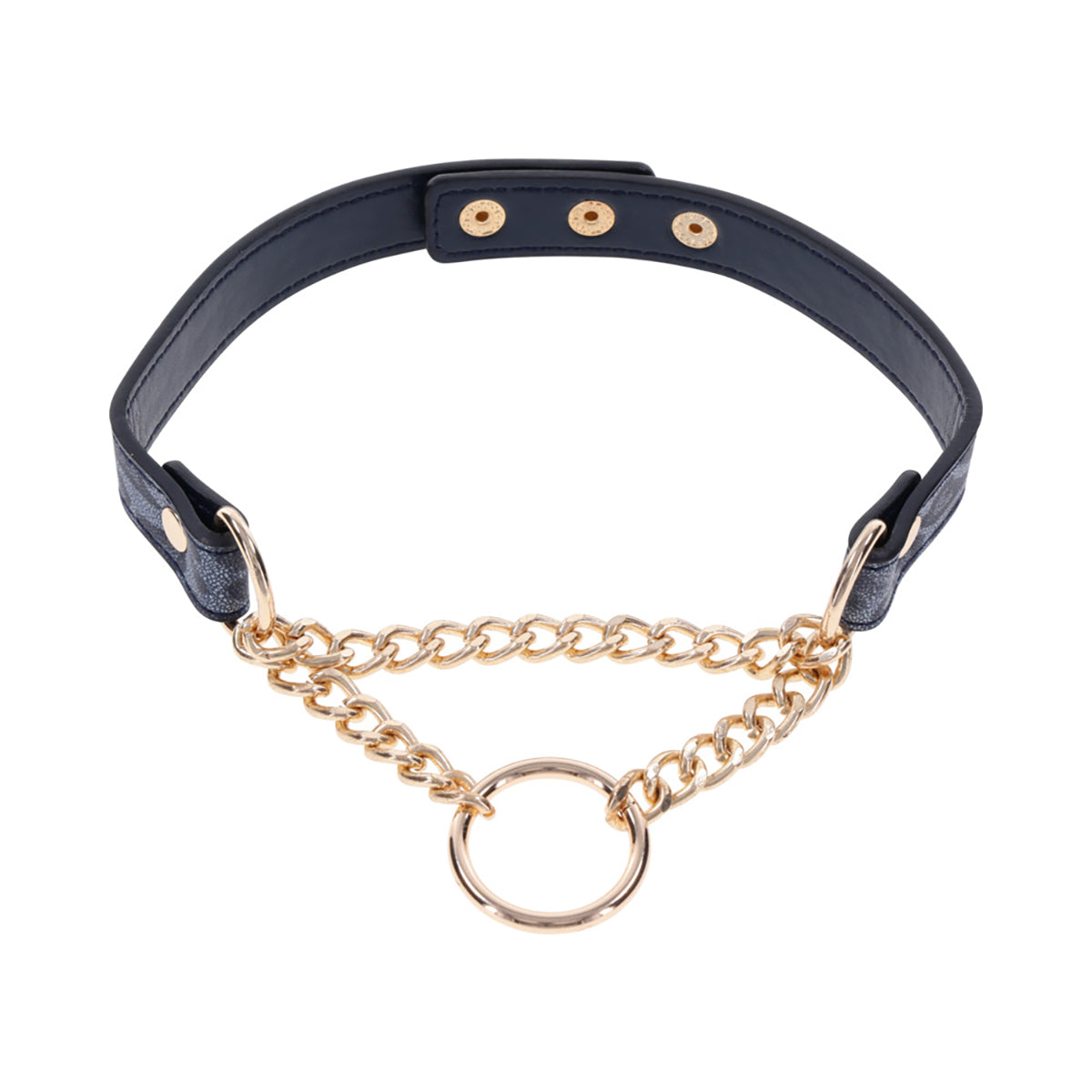 This elegant piece, crafted from animal-printed faux leather, is adorned with subtle gold hardware, making it a stylish accessory for any occasion. The gold ring that hangs from your neck can be used for playful tugs or to attach a leash, adding an extra layer of excitement to your encounters. Wear it as a bold statement or a discreet symbol of your wild side, and let your inner feline shine.