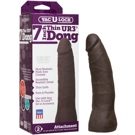With its classic bestselling shape, phallic head, and perfectly textured shaft, this 7” attachment will have you falling in love! Made with our lifelike ULTRASKYN™ material, the Vac-U-Lock 7 Inch Thin Dong Attachment works with all Vac-U-Lock™ systems and is Proudly Made in America. • Handcrafted from ULTRASKYN, for The Ultimate Feel• Popular Slim Shaft Design• Tapered Tip for Easy Insertion• Dual Density Design Feels Real• Soft Exterior and Firm Core• Incredibly Lifelike Look and Feel• Textured Veins for Added Stimulation• Use with Any Vac-U-Lock Compatible Harness or Accessory• O-Ring Harness Compatible• Phthalate-Free, Body-Safe• Proudly Made in AmericaTotal Length 7.5”Insertable/Usable Length 6.5"Width/Diameter 1.5"Circumference 5"