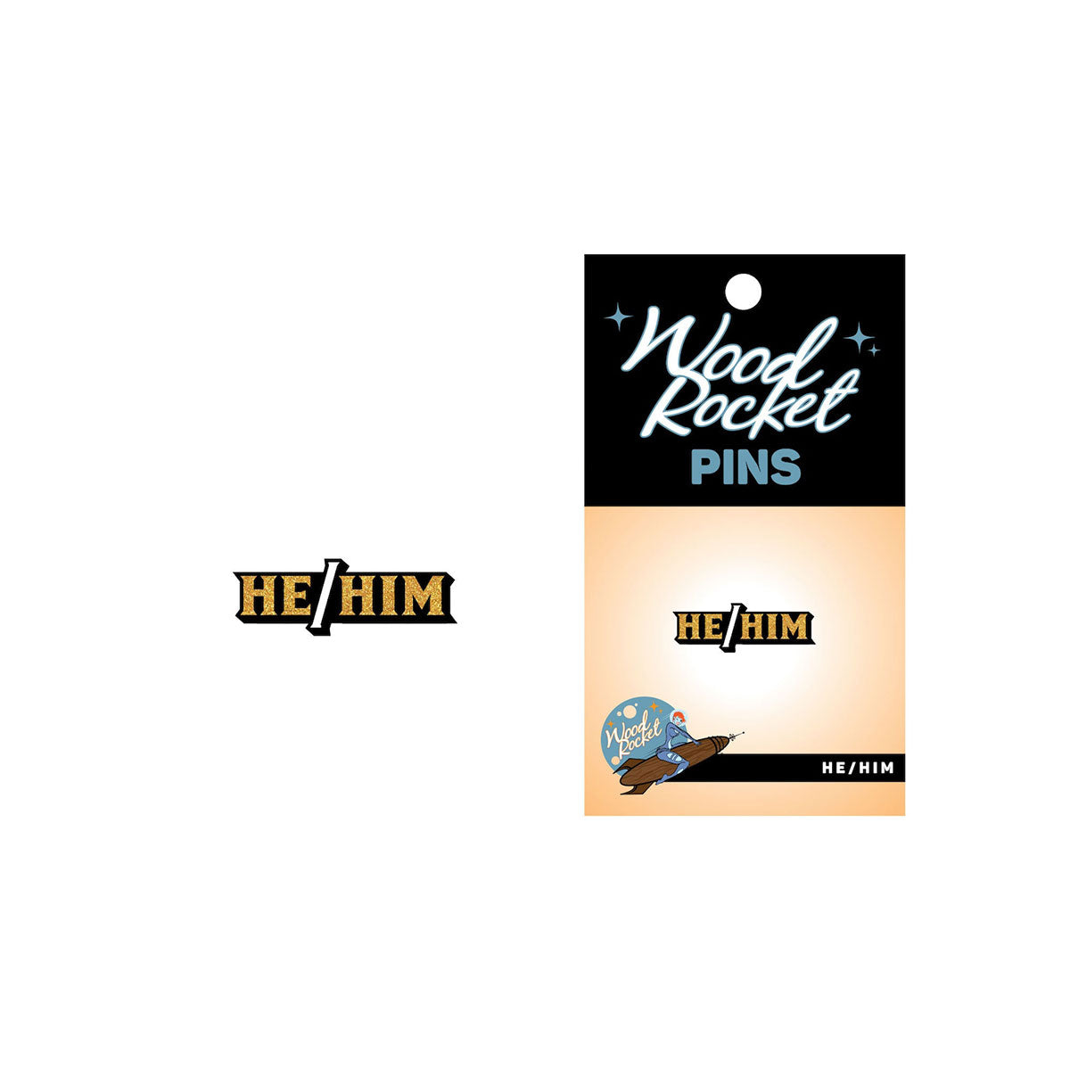This fun He/Him Pronoun soft enamel lapel pin by Wood Rocket is the perfect accessory to let others know right away what your preferred pronouns are, avoiding potential mistakes leading to dysmorphia or confusion. Stick it on a hat or clothes or backpack or bag or purse it or give it as a gift!
